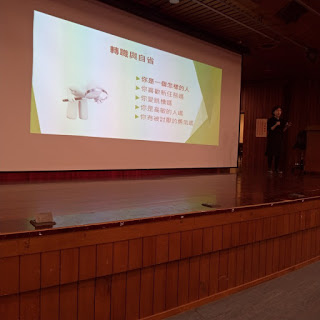 媒體業的洗禮,讓她深感有些產業文化型態是不會改變的,要萬分明白自己每一次轉職的目的,一進去就先設下離職日,每一步都是有策略有原因,配合度極高,個人口碑,轉身就越漂亮,也是這次講座中新的觀點。